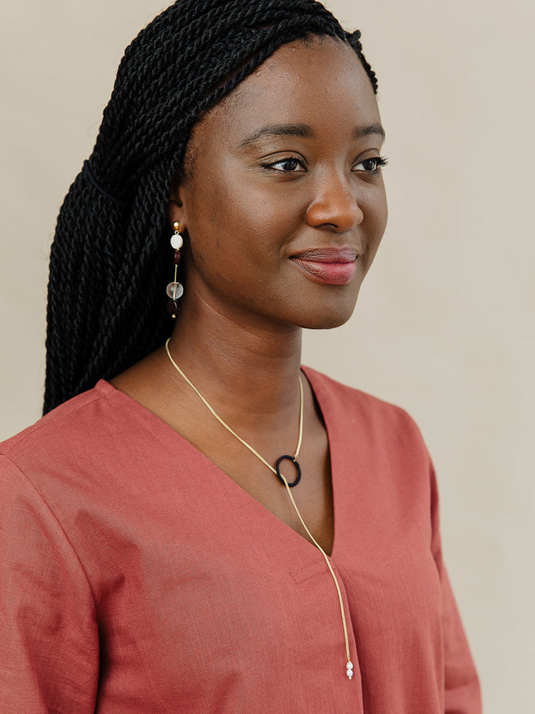 These sleek dangle earrings feature round beads in a stacked arrangement. Crafted from resin, upcycled bone, and brass, they're the ultimate style for a modern look.