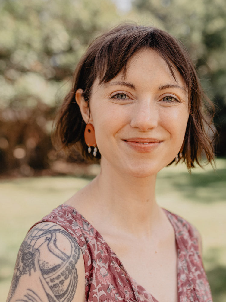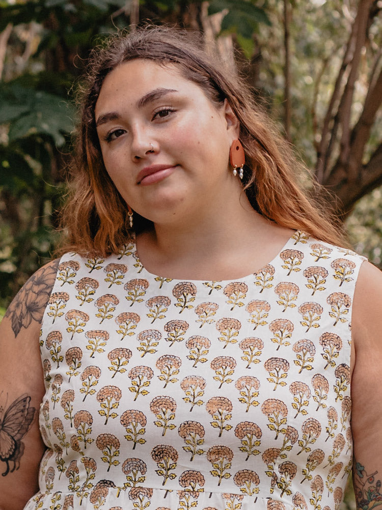 Two asymmetrical dangles of pearls hang from a flat clay piece in these statement earrings. Wear on a night out or a day at work for a funky vibe.