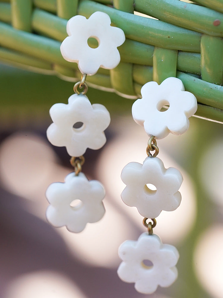 Wink at your inner wild child and pretend you're frolicking in a field with this dainty dangle earring. The hanging flower trio brings a breath of fresh air to your personal style.
