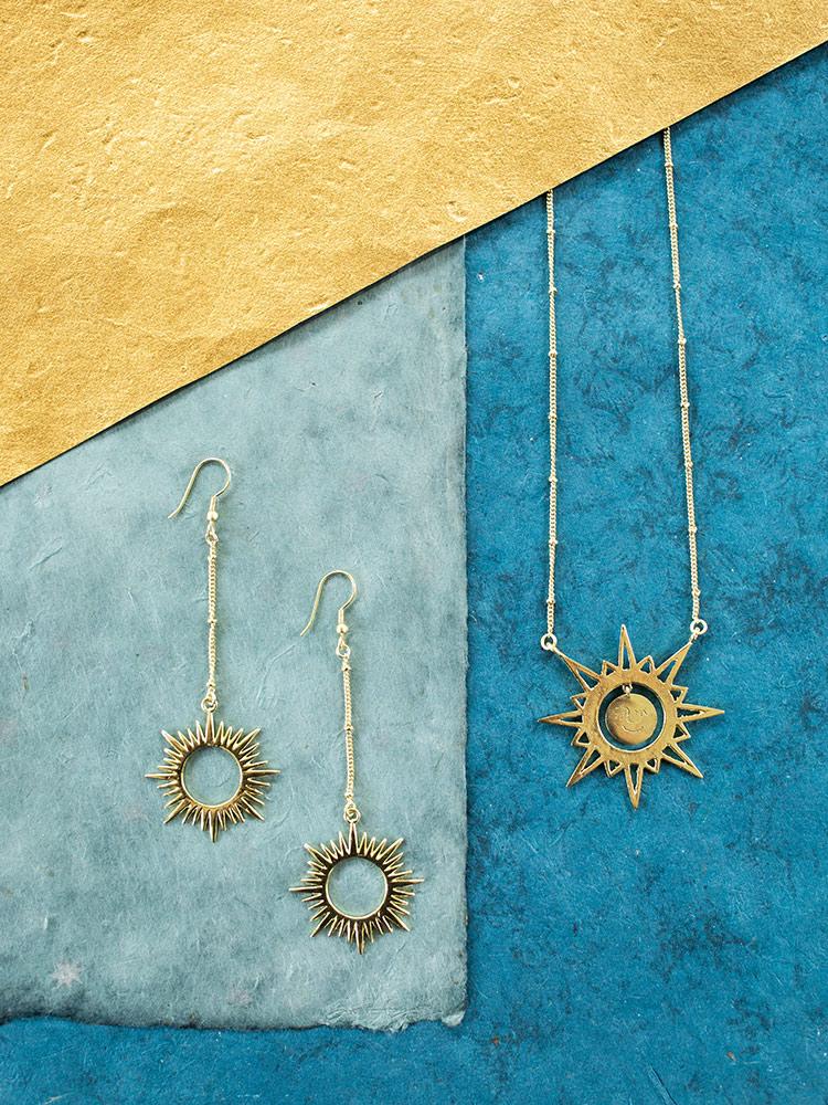 Channel your inner '20s girl, and dangle some gold from your ears. These deco sun rays are a lovely complement to a pendant necklace.