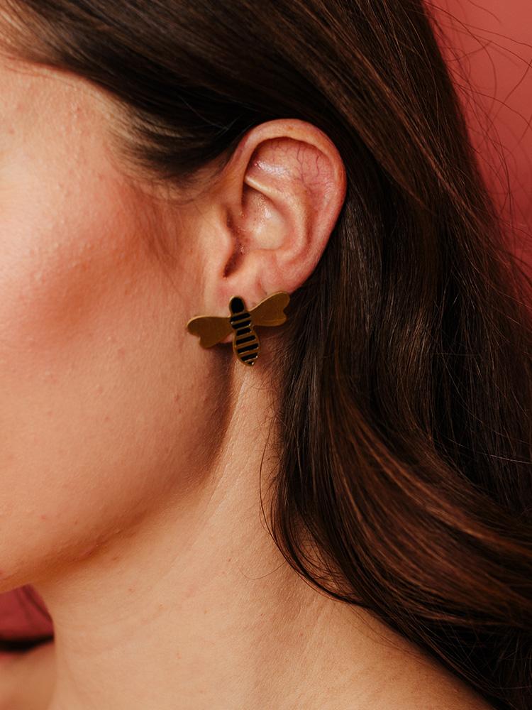These goldtone brass studs are made even sweeter with a whimsical bee shape. Embrace your inner wildflower and bring home the honey!