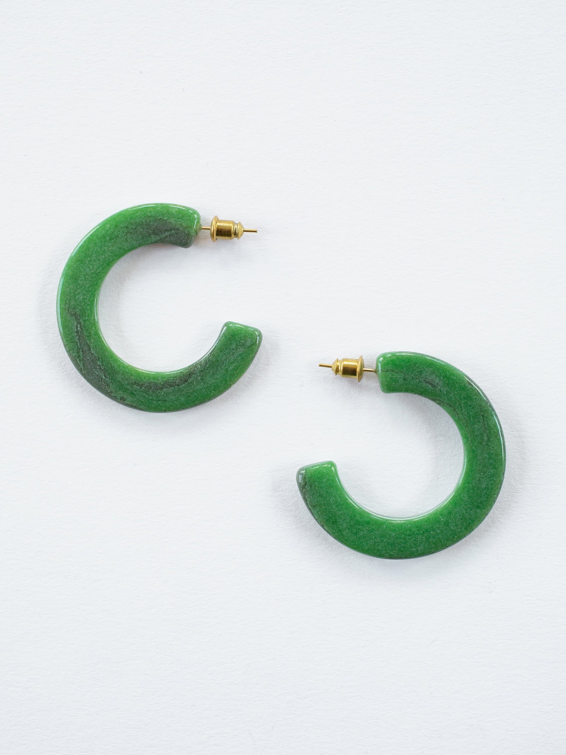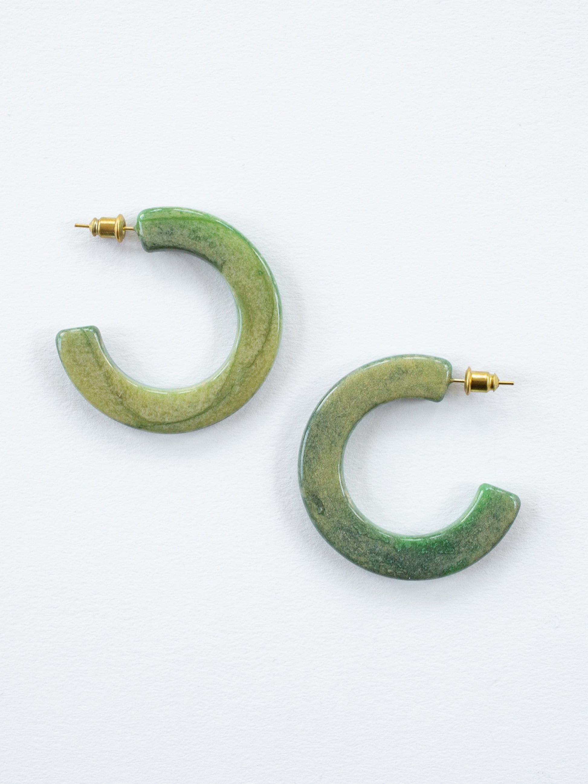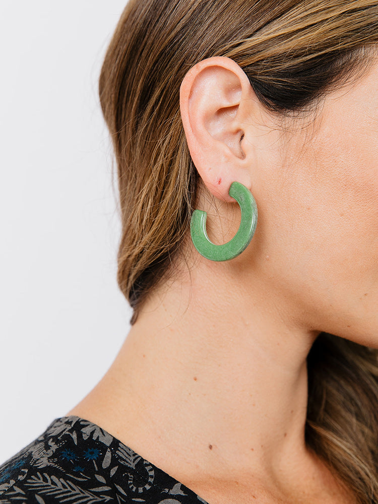 Hoop earrings are always in style, and these jade beauties will be your new forever favorites. Pair with our Jade Bangle for the perfect vintage-inspired set. Green tones and textures are unique and each piece may vary slightly from pictured.