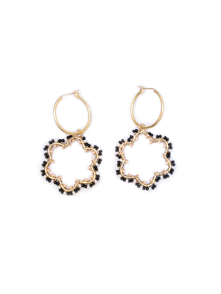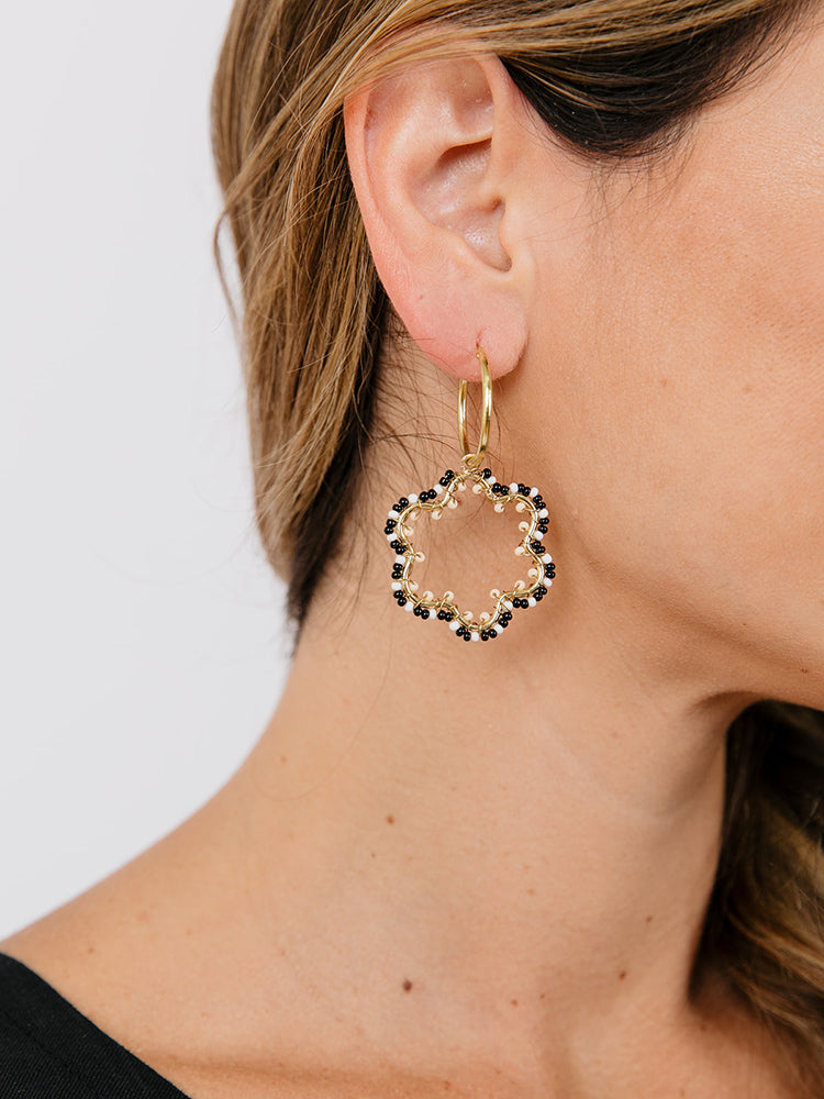 These pretty dangle earrings pair a mod design with a subtle floral shape. Delicate beadwork gives these hoops the handcrafted details we love.