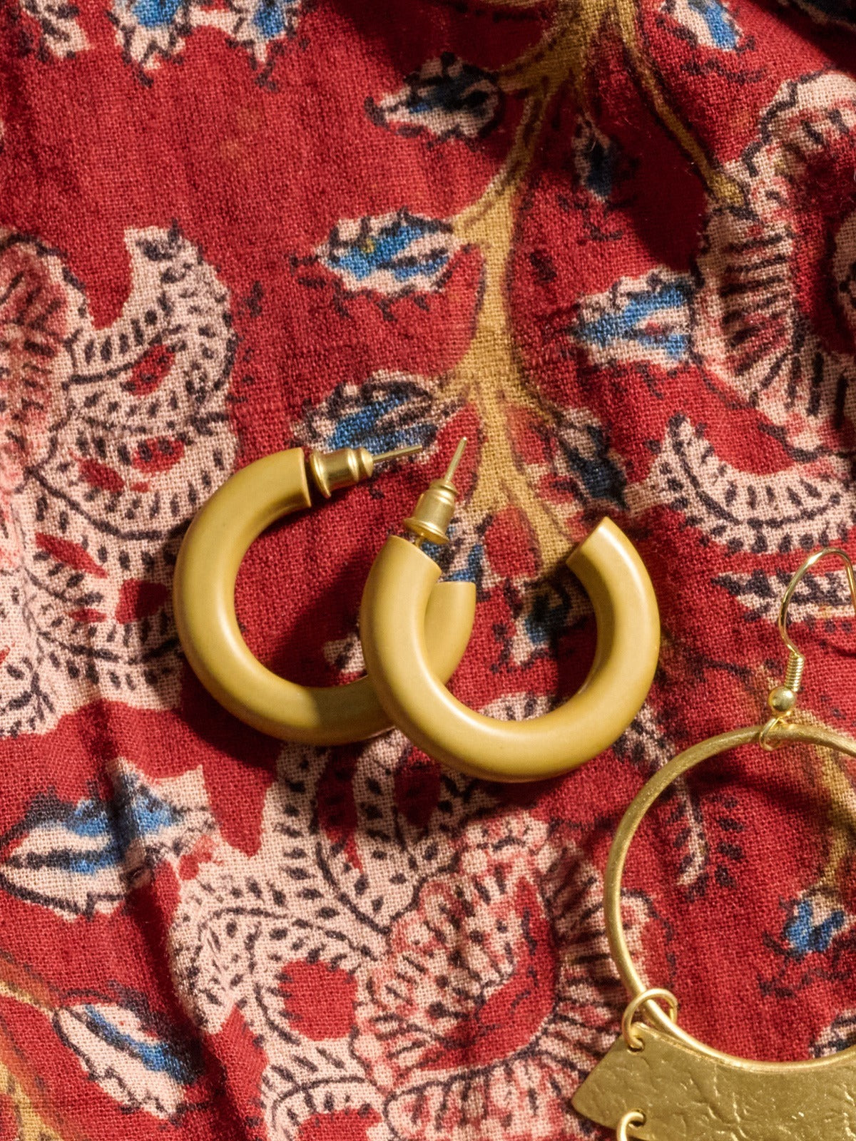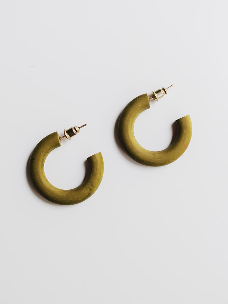 Try an earthy vibe with these subtle olive hoops. You may not have guessed it - these earrings are made of clay! We'd wear these anywhere from the office to a night out.