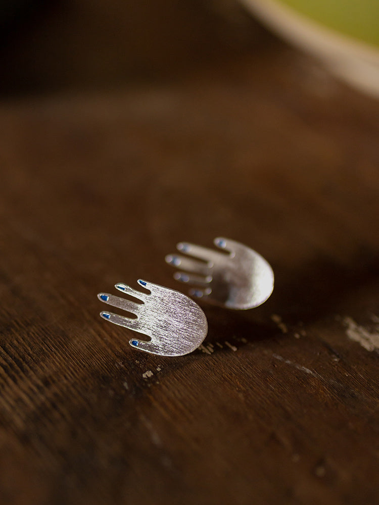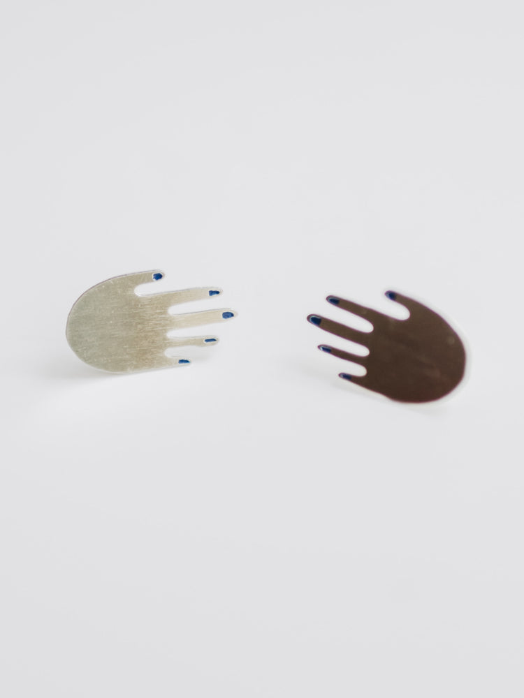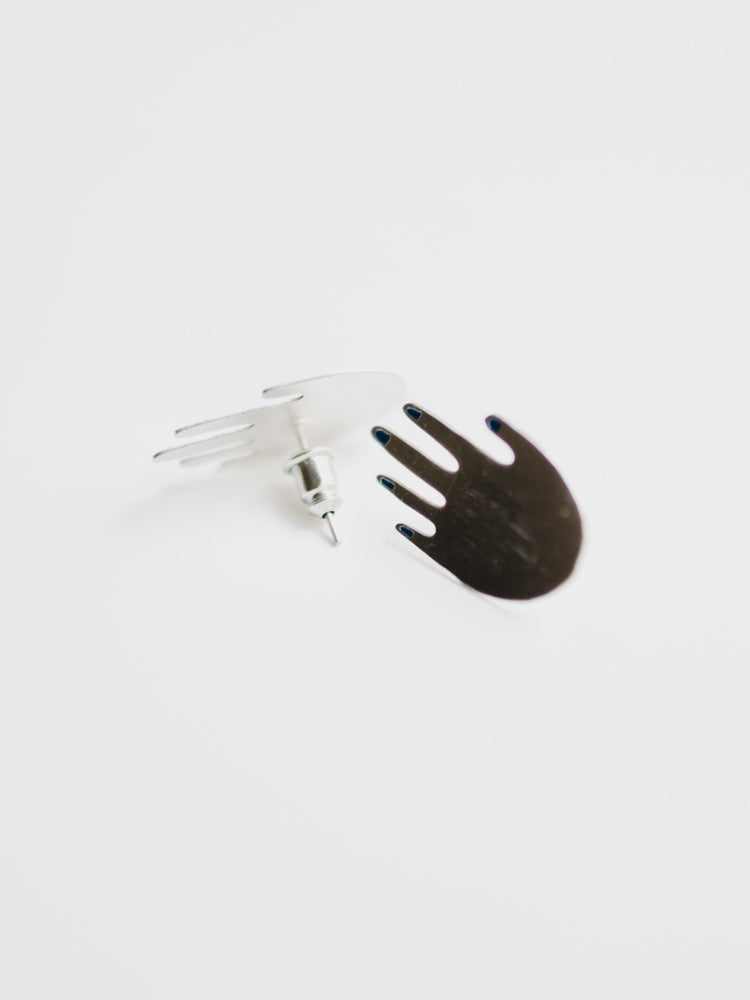 Who can turn down a good mani? Get playful - these perfectly polished hand earrings have hand painted blue nails.