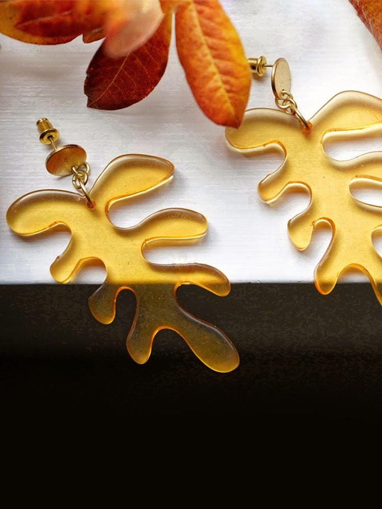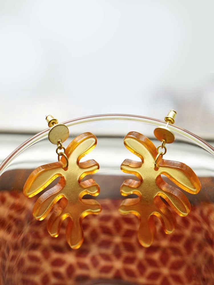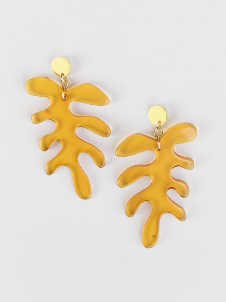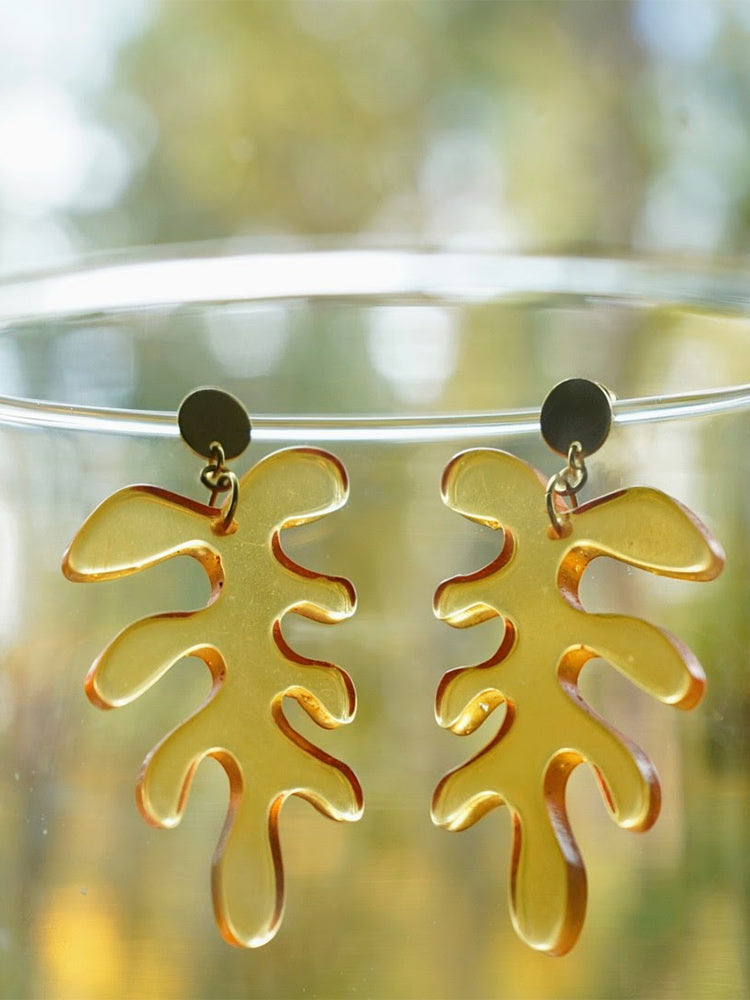Add some color to your day in amber statement earrings. The leaf shape brings a playful spirit to an everyday outfit.
