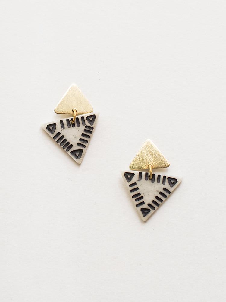 Add a touch of handmade flair to your everyday outfit. These gold tone earrings feature upcycled bone and subtle detail with its etched design.
