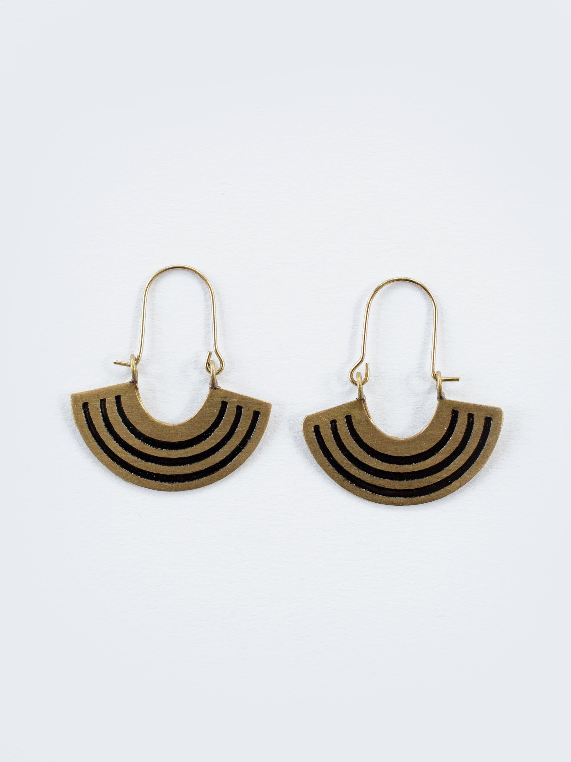 These hoop earrings are the perfect pair to be dressed up or down. Minimal enough for everyday wear, but sophisticated enough for a special night out with your favorite LBD, brass and graphic black is always a winning combo.