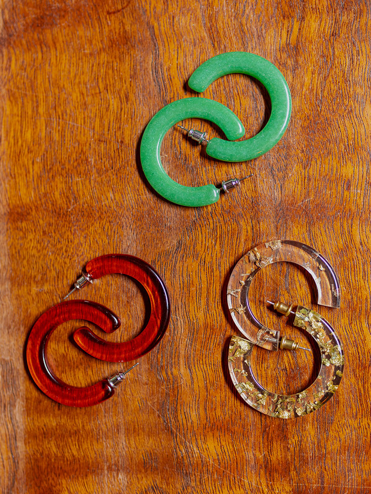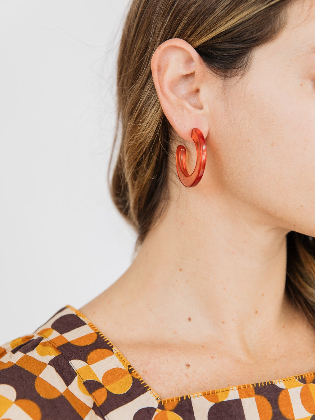 These resin hoop earrings embody the prettiest shade of autumnal warmth. They make for a pretty pop of color that blends in with many a look.