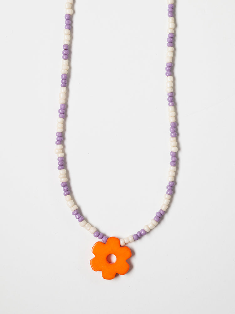 This floral beaded necklace plays with color, but doesn't go overboard. The retro flower takes center stage, adding the perfect whiff of mod to your favorite outfit.