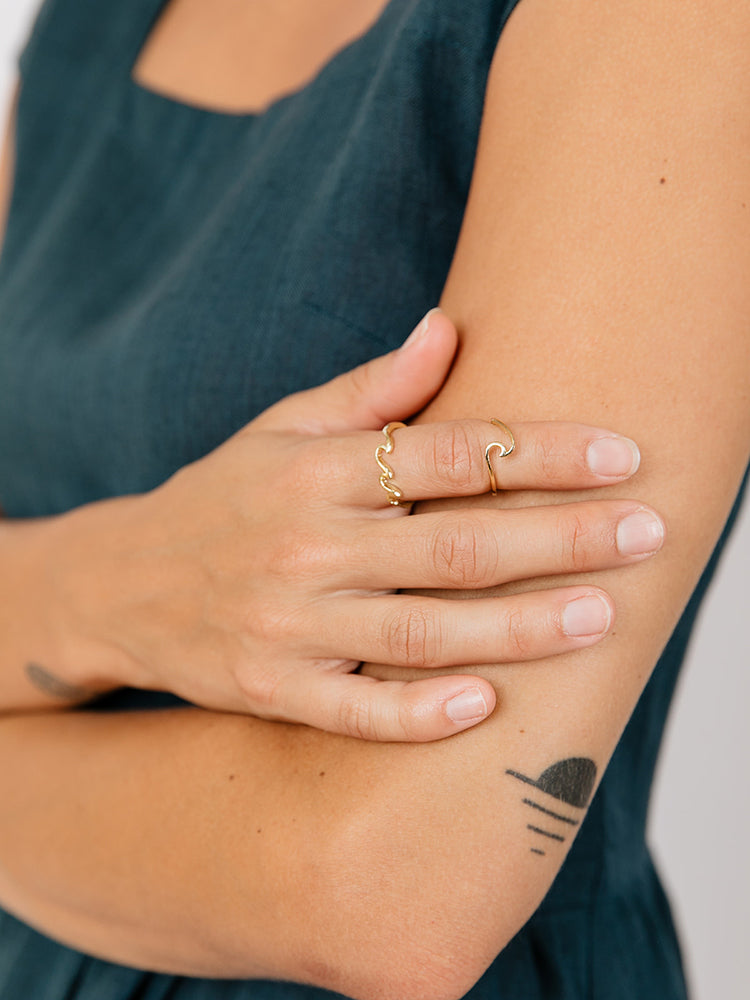 Surf's up with this adjustable gold ring set. Featuring a larger size and a midi size for layering, this gold ring duo brings a little slice of ocean life to your minimal jewelry collection.