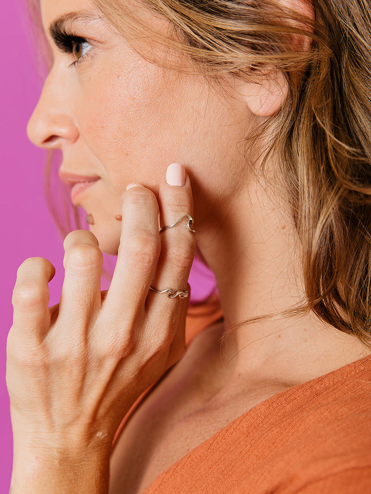 Surf's up with this adjustable silver ring set. Featuring a larger size and a midi size for layering, this silver ring duo brings a little slice of ocean life to your minimal jewelry collection.